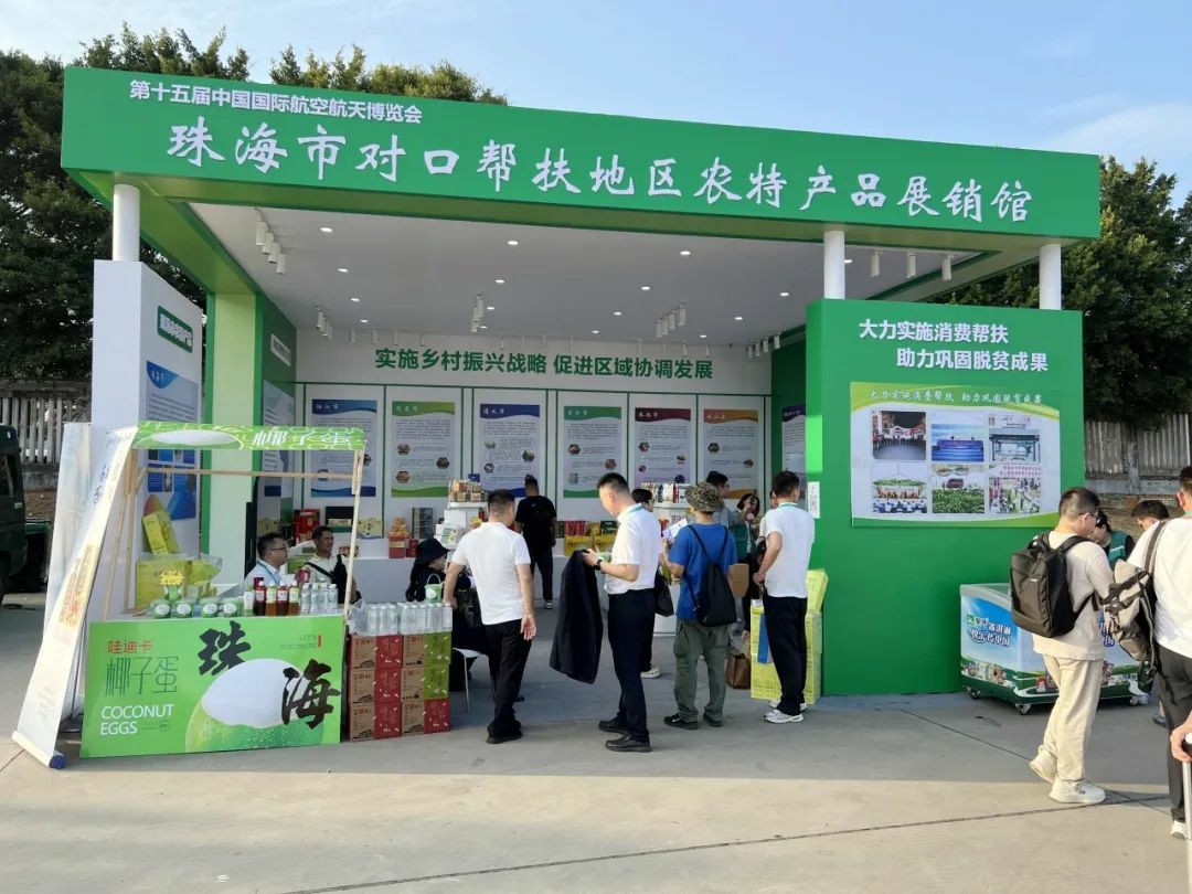 11月12日—17日,第十五届中国国际航空航天博览会期间,珠海市农业农村局、奇异果体育农产品物流园有限公司联合设立珠海市对口帮扶地区农特产品展销馆,精心展出200余种农特优产品,向全球来客展现珠海在大力实施消费帮扶、助力乡村振兴工作中取得的丰硕成果。